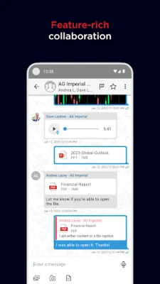Global Relay for Intune has all the functionality of our base application, Global Relay App, including support for sending and receiving communications via personal devices (i.e. instant messaging, text, voice, WhatsApp) and corporate devices (i.e. Android Text via native app, voice, and WhatsApp) with customers, colleagues, and industry peers.