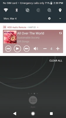 Starting from the version 4.3.1, HDD Audio Remote can only be used on devices with Android 7.0 or a later version installed. On any devices with Android 6 or an earlier version, you cannot use HDD Audio Remote Version 4.3.1 or later versions.