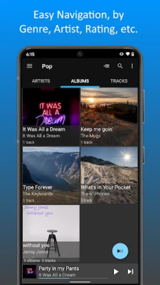 -> Navigate by Artist, Album, Composer, Genre, Playlist, etc.