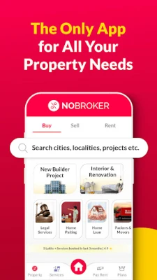 Introducing the NoBroker App - the ultimate property app for hassle-free property renting, buying, & services. Whether you are looking for a house/apartment/flat/room for rent, or want to buy/sell a property or need home services, NoBroker has got you covered.