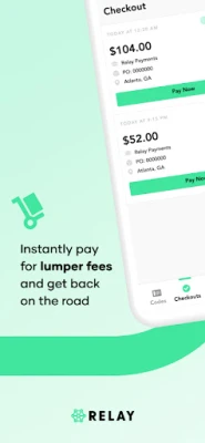 PAY LUMPERS: Drivers can save 20+ minutes on the dock and get back on the road faster by using Relay for unloading payments. No more late-night phone calls or lost receipts. Relay removes the need to phone to verify fleet check numbers with dispatchers and gets drivers off the dock and back on the road faster.