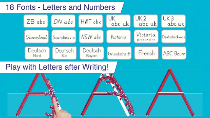 • Learn with 50+ fun animated stickers, sound effects, and interactive games that animate letters at the end of the writing